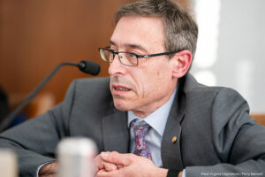 Delegate Evan Hansen attends a House Committee meeting on Energy and Public Works. Photographed by Perry Bennett for the West Virginia Legislature.