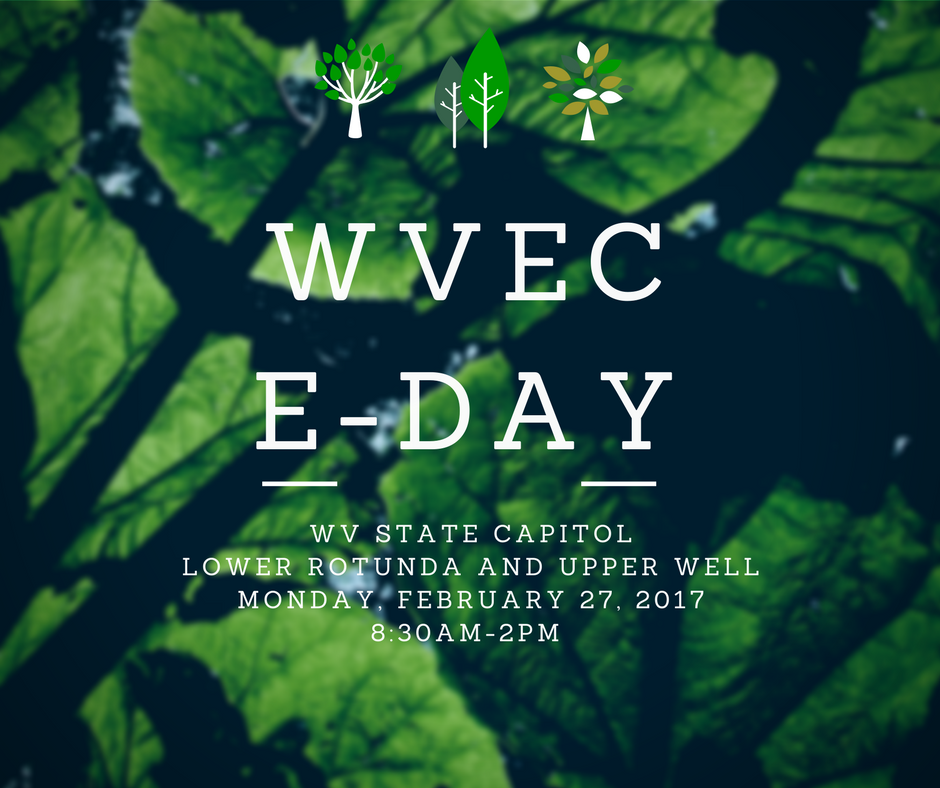 Join fellow environmental activists from around the state for the WV Environmental Council’s Annual E-day on Monday, February 27th at the WV State Capitol! You’ll have a chance to lobby your representatives on important environmental issues, learn about various environmental organizations from across the state, and rally with fellow like-minded folks who care for the environment.