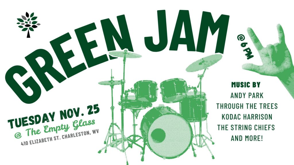 Join us for a night of music, friends, and action at WVEC’s annual GREEN Jam on Tuesday, November 25, 6 pm at The Empty Glass in Charleston, WV.