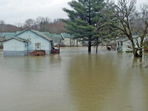 A residential area is flooded by Dunlop Creek in the spring of 2010. Photo by USDA’s Natural Resources Conservation Service.