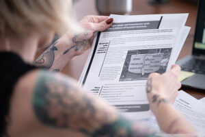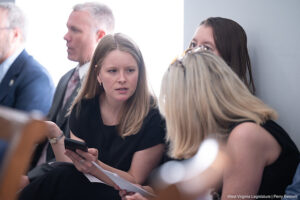 Delegate Kayla Young reviews information about aboveground storage tanks during a House Energy and Public Works Committee meeting on March 9, 2026. Photographed by Perry Bennett.