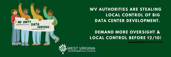 Tell Lawmakers to Require More Oversight of Data Centers WVEC December 5, 2025 Action Alerts Comments Bluesky Share on Facebook Twitter Share on Share Bluesky Share on Facebook Twitter Share on ShareRelated PostsDec 5 2025 Action Alerts Take Action: Demand Stronger Oversight of Data CentersOct 17 2025 Action Alerts Join the Team: WVEC Is Hiring a Communications CoordinatorSep 17 2025 Action Alerts Reminder – WVEC Annual Meeting is this Saturday, Sept. 20!Sep 14 2025 Action Alerts Time is Running Out – WVEC Annual Meeting Sept. 20 | Limited Meals & Dorms