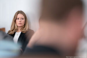 WVEC lobbyist Lucia Valentine listens to a discussion in a House Committee meeting on Energy and Public Works. Photographed by Perry Bennett for the West Virginia Legislature.